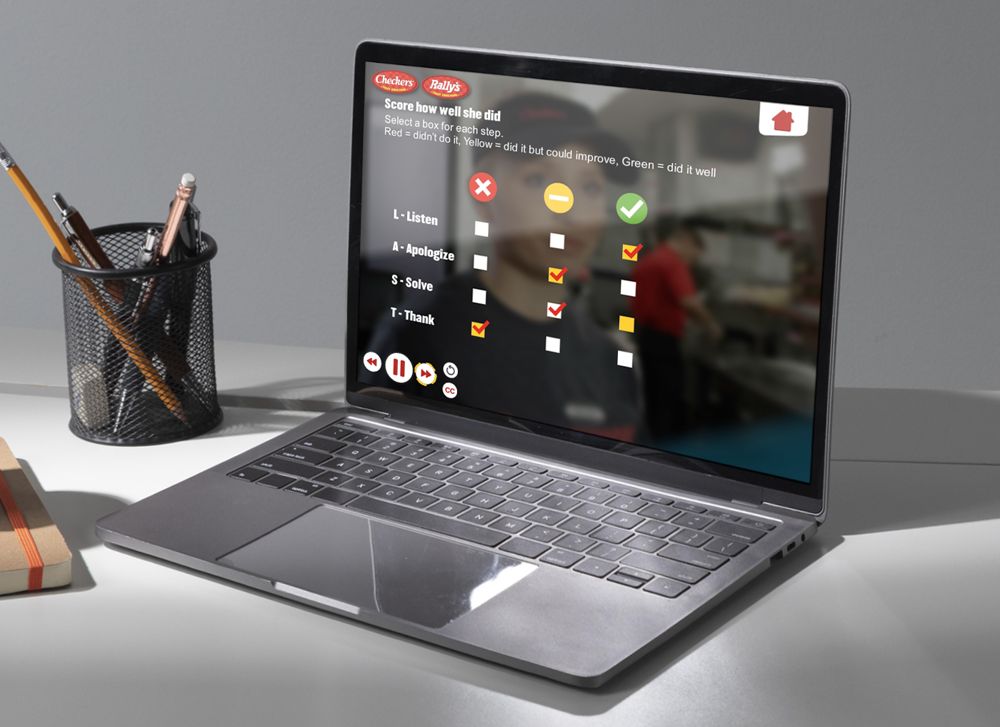 Checkers & Rally’s recognized the need to enhance customer service skills, particularly in guest recovery scenarios. Wanting to showcase effective techniques through videos, they entrusted Designing Digitally to seamlessly integrate these videos into an engaging and interactive training program.