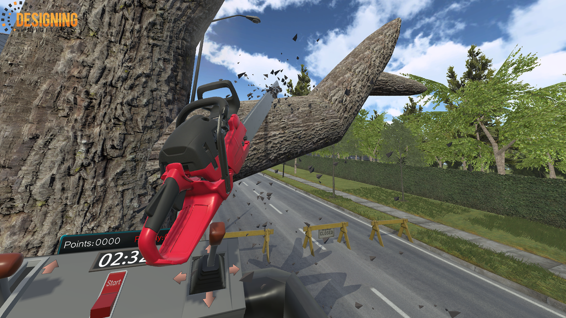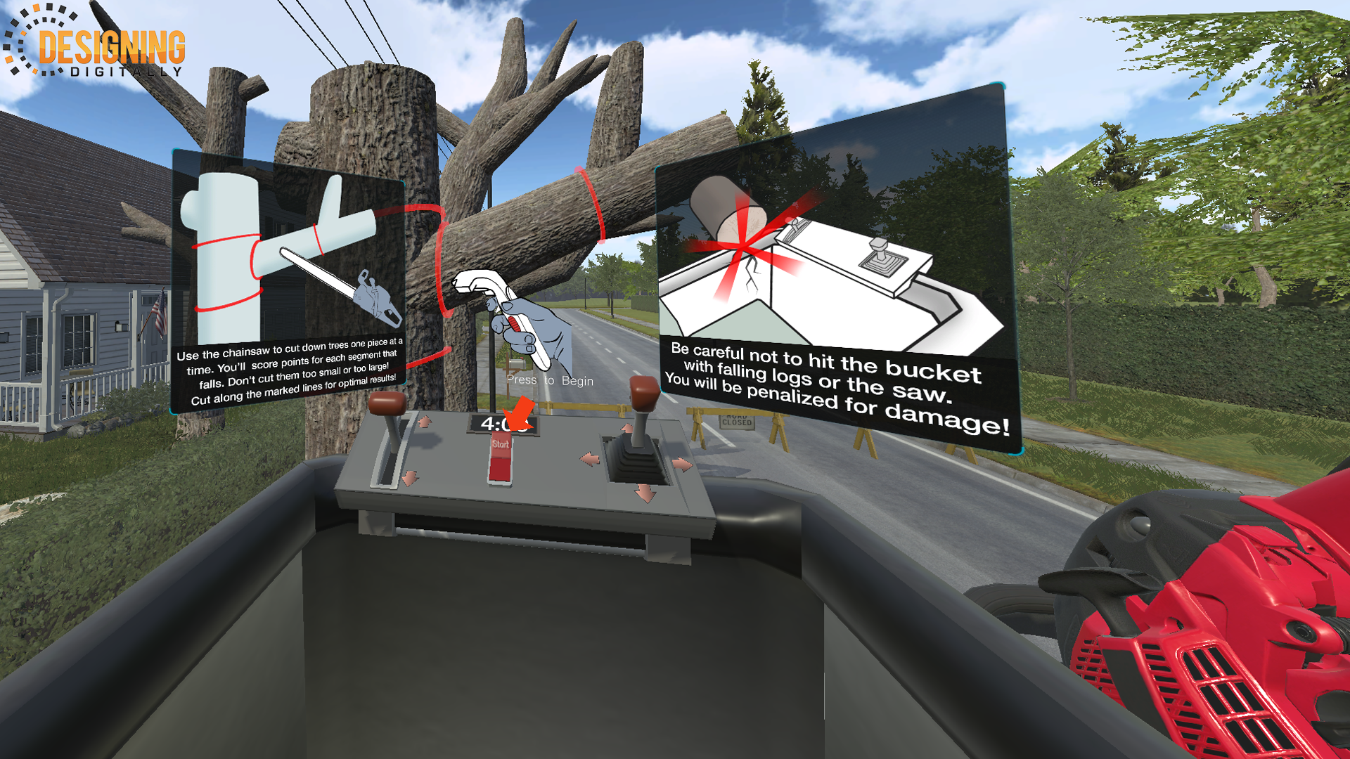 Designing Digitally, Inc. conducted a comprehensive analysis and proposed an immersive 3D learning solution titled “Chop and Drop.” This virtual reality (VR) experience allowed learners to practice tree cutting in a safe and enjoyable environment. The 3D virtual environment, built around game mechanics, replicated real-life scenarios. The interactive game provided a fun yet educational platform for electrical line workers to enhance their skills without risking property damage or safety hazards.
