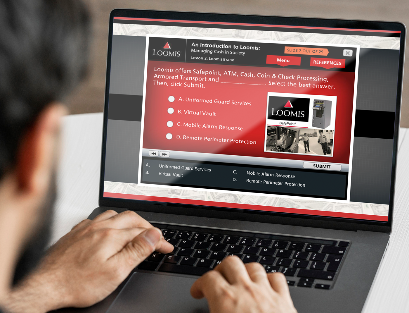 Loomis AB has an illustrious heritage and a long history of managing cash throughout the world. Loomis has a strong international presence with about 400 branch offices spread across more than 20 countries. They offer comprehensive solutions for cash handling primarily to banks and retailers. Loomis faced a situation where they were not able to train all employees through instructor-led training face to face. Therefore, they were looking for a vendor that could offer a solution that included not only the learning modules translated into a multitude of languages for their international branch offices but a custom learning management system as well.