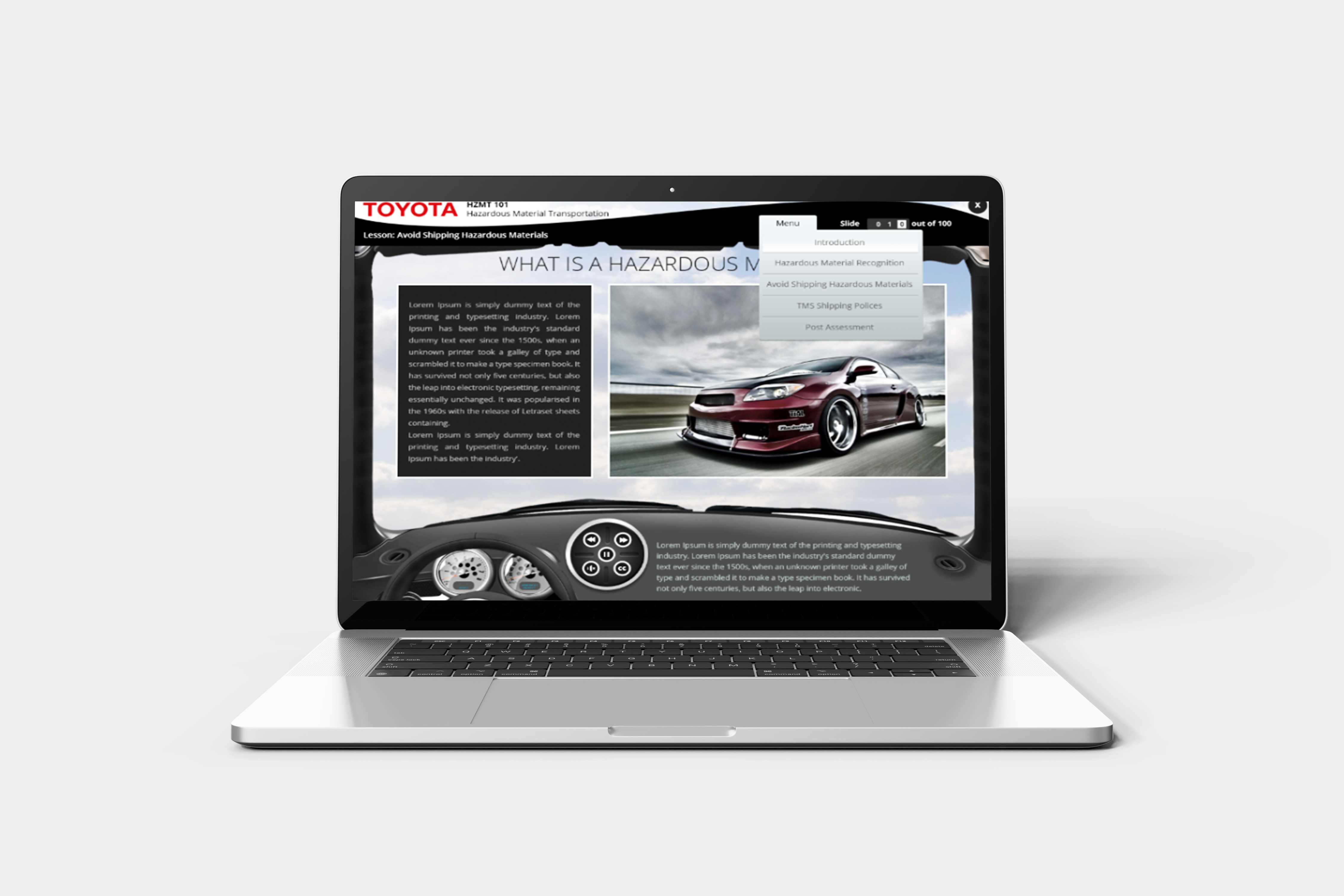 Safety is paramount in the high-stakes world of working with and shipping hazardous materials. Toyota understood the criticality of training its employees in proper handling and shipping procedures to avoid costly and potentially dangerous mistakes. The challenge was extending this crucial training to a broader audience without sending trainers nationwide multiple times a year. Additionally, Toyota sought a solution that would be easily accessible as a reference tool for employees anytime.