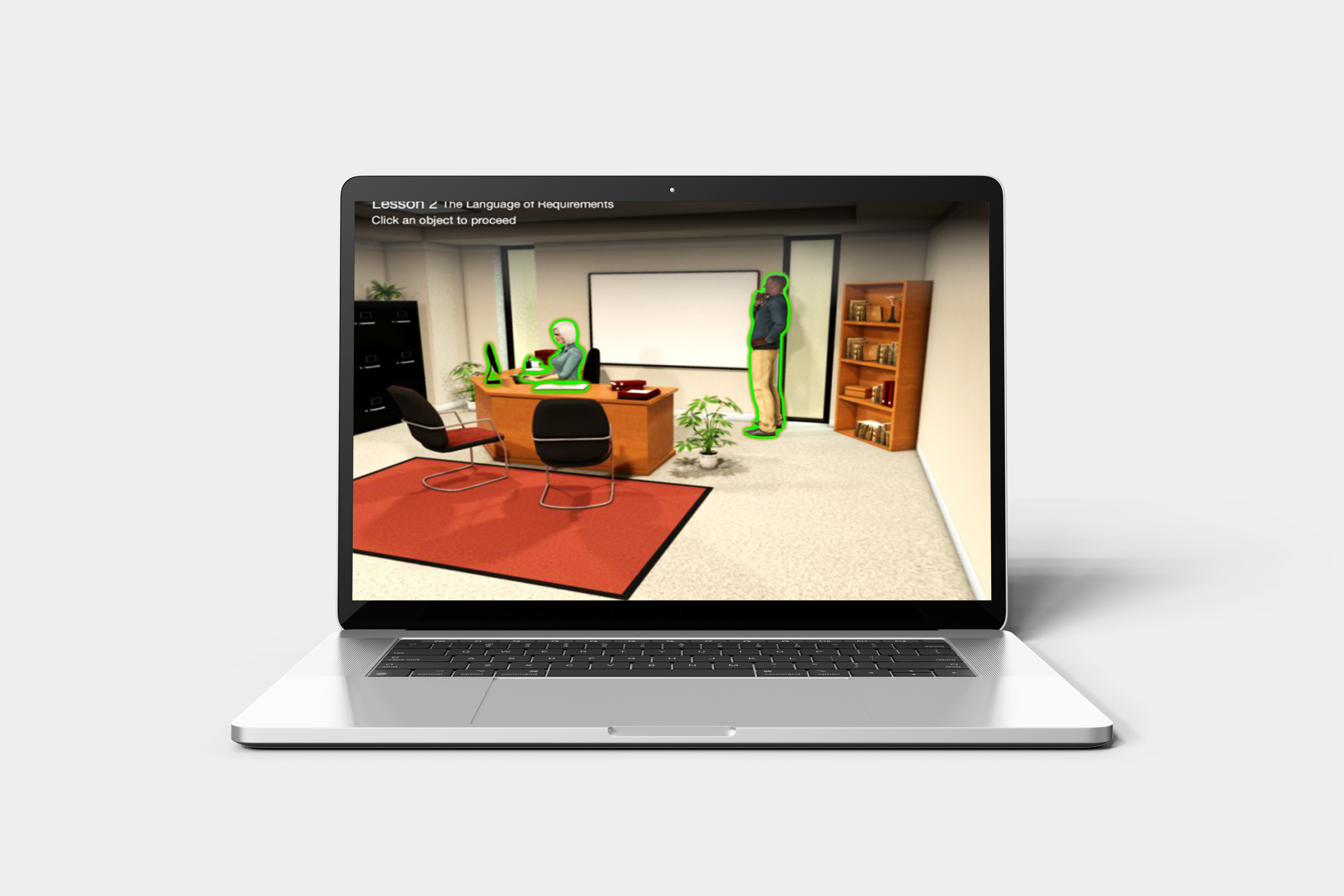 Leveraging the findings from our analysis, Designing Digitally worked closely with NASA to ensure the eLearning course we built met all their unique requirements, solving the learning and development problems they were facing and aligning with the agency’s strategic initiatives. We built a custom 3D scenario-based eLearning module utilizing engaging learning activities inspired by real locations and job tasks within the NASA Goddard facility for learners to explore. Each room includes items and information for learners to interact with, focusing on specific hard or soft skills.