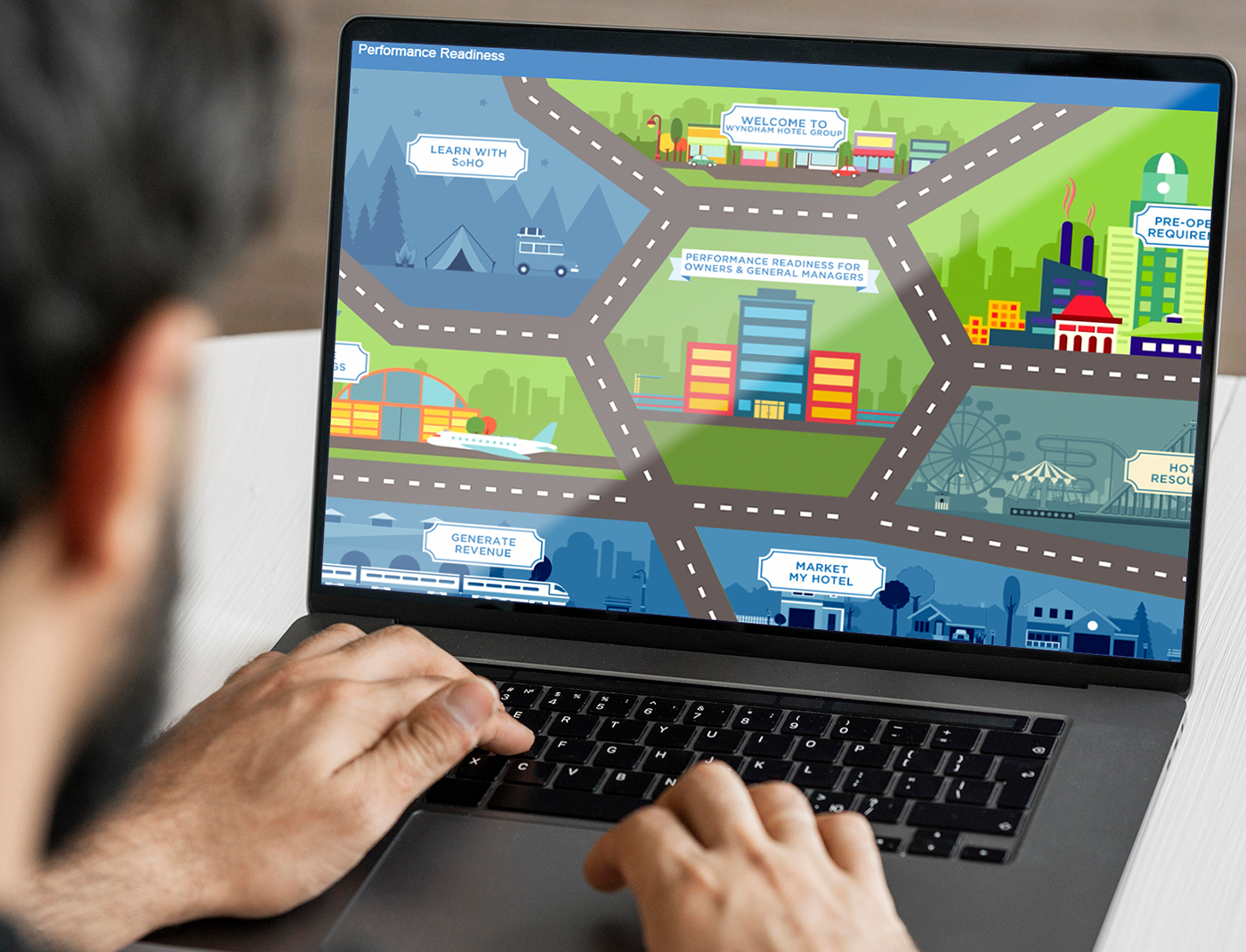 They partnered with Designing Digitally, Inc. to create an inviting training course overviewing the requirements and available tools. In the Needs Analysis process, Designing Digitally, Inc. learned the audience has varying degrees of exposure to the hospitality industry and the Wyndham brand. We suggested designing the training so new owners and managers could omit or pass by the content they already know.