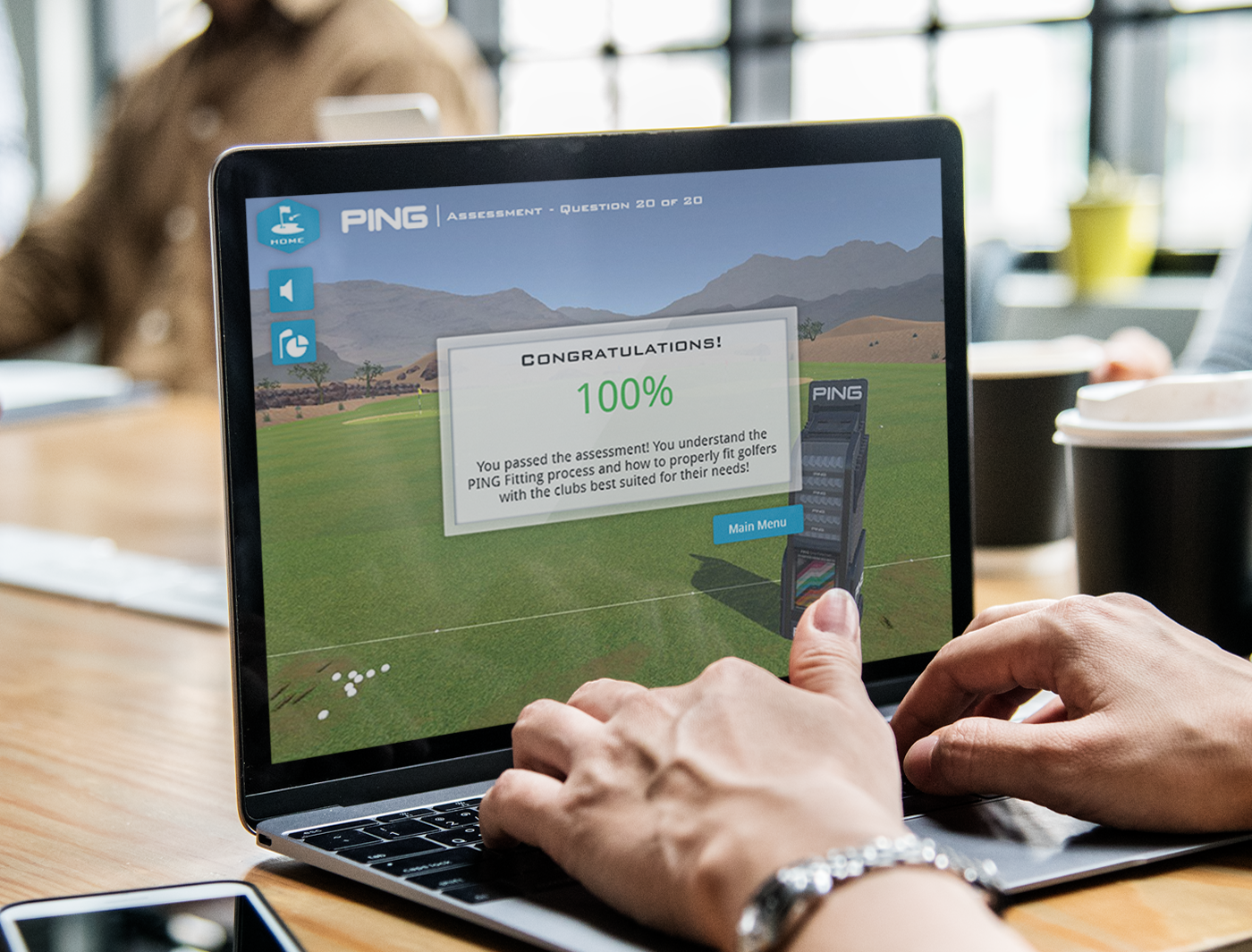 Designing Digitally worked closely with PING to craft a simulation that accommodated their in-depth fitting process. Designing Digitally was also able to design an interface that gave users access to informative guides while still taking the training. A key aspect to the simulation was for users to learn how to evaluate a customer’s ball flight and select a club that would give them their desired results. By using the simulation, learners can see the effect of using a particular club based on measurements of customer’s height and wrist-to-floor measurement.